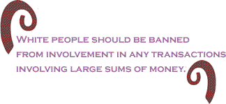 then white people should not be allowed near anyone’s money. Taxpayers, shareholders,