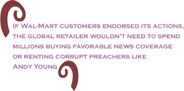 it wants, purchasing politicians and preachers wholesale. Wal-Mart's