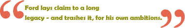 Ford lays claim to a long legacy - and trashes it, for his own ambitions.