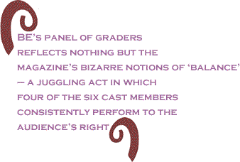 BE’s panel of graders reflects nothing but the magazine’s bizarre