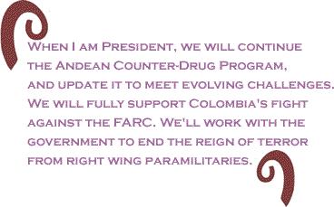 We cannot ignore suffering to our south, nor stand for the globalization of the empty stomach. Responsibility rests with governments in the region, but we must do our part. I will substantially increase our aid to the Americas, and embrace the Millennium Development Goals of halving global poverty by 2015. We'll target support to bottom-up growth through micro financing, vocational training, and small enterprise development. It's time for the United States to once again be a beacon of hope and a helping hand.