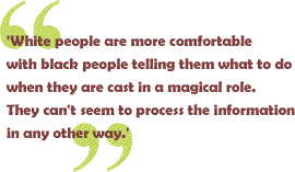 Ariel Dorfman sees sinister forces, something disturbing in such portrayals. "The magic Negro is an easy way of making the characters and the audiences happy. And I am for happiness, but the real joy of art is to reveal certain intractable ways in which humans interact. This phenomenon may be a way of avoiding confrontation," says Dorfman, a playwright, poet and cultural critic.
