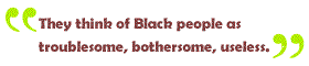 prevails in this area. They think of Black people as troublesome, bothersome,