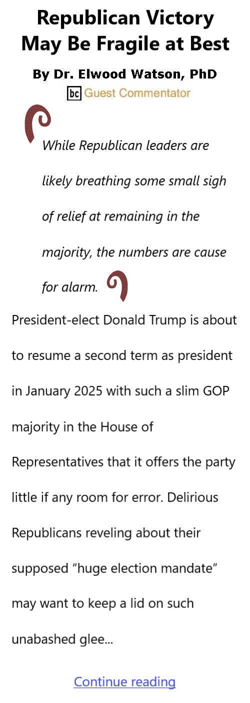 Republican Victory May Be Fragile at Best By Dr. Elwood Watson