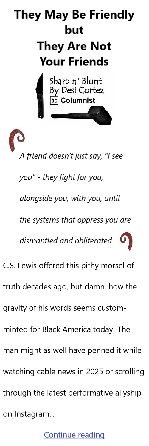 They May Be Friendly, but They Are Not Your Friends By Desi Cortez