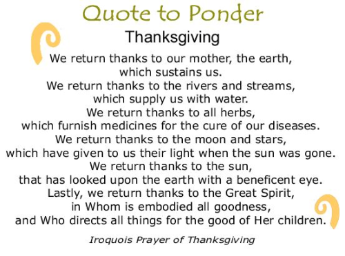 Thanksgiving Prayer from the Haudenosaunee (Iroquois) Nation