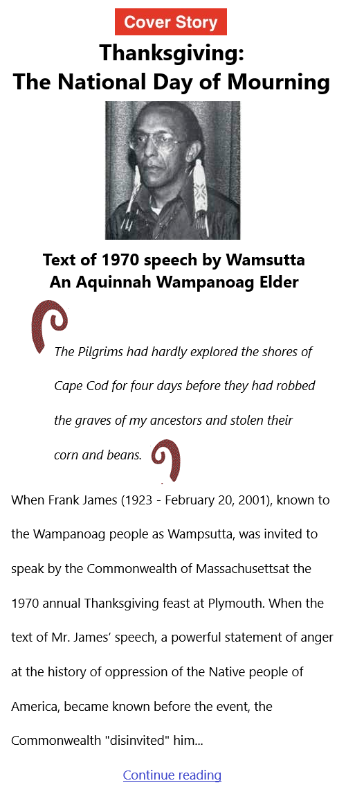 Cover Story:Thanksgiving: The National Day of Mourning