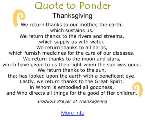 Iroquois Prayer of Thanksgiving