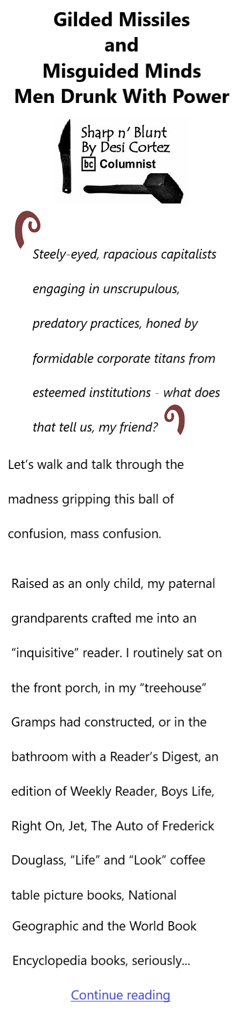 Gilded Missiles and Misguided Minds. Men Drunk With Power By Desi Cortez